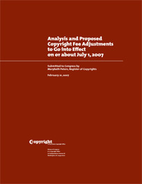 Sometime in 2008: The Office will charge a fee for contents titles listed on an application for a collection, for example, for the titles of songs contained on an album. The Office will include these titles in its public registration records to make them more comprehensive and more useful to those who search the records. A fee will be charged for each title: $1 for each contents title in an electronic filing: $3 for each contents title on a paper application. The Office submitted a fee study to Congress that provides an analysis of the costs it incurs in providing services, as well as other pertinent information, including the schedule of fees. (Read Federal Register final rule.) |